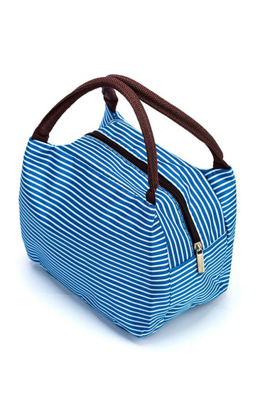 Фото товара 17043, термосумка для ланч-бокса в полоску «горячий обед» синяя