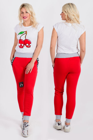 Красные брюки в стиле спорт шик Трикотажница
